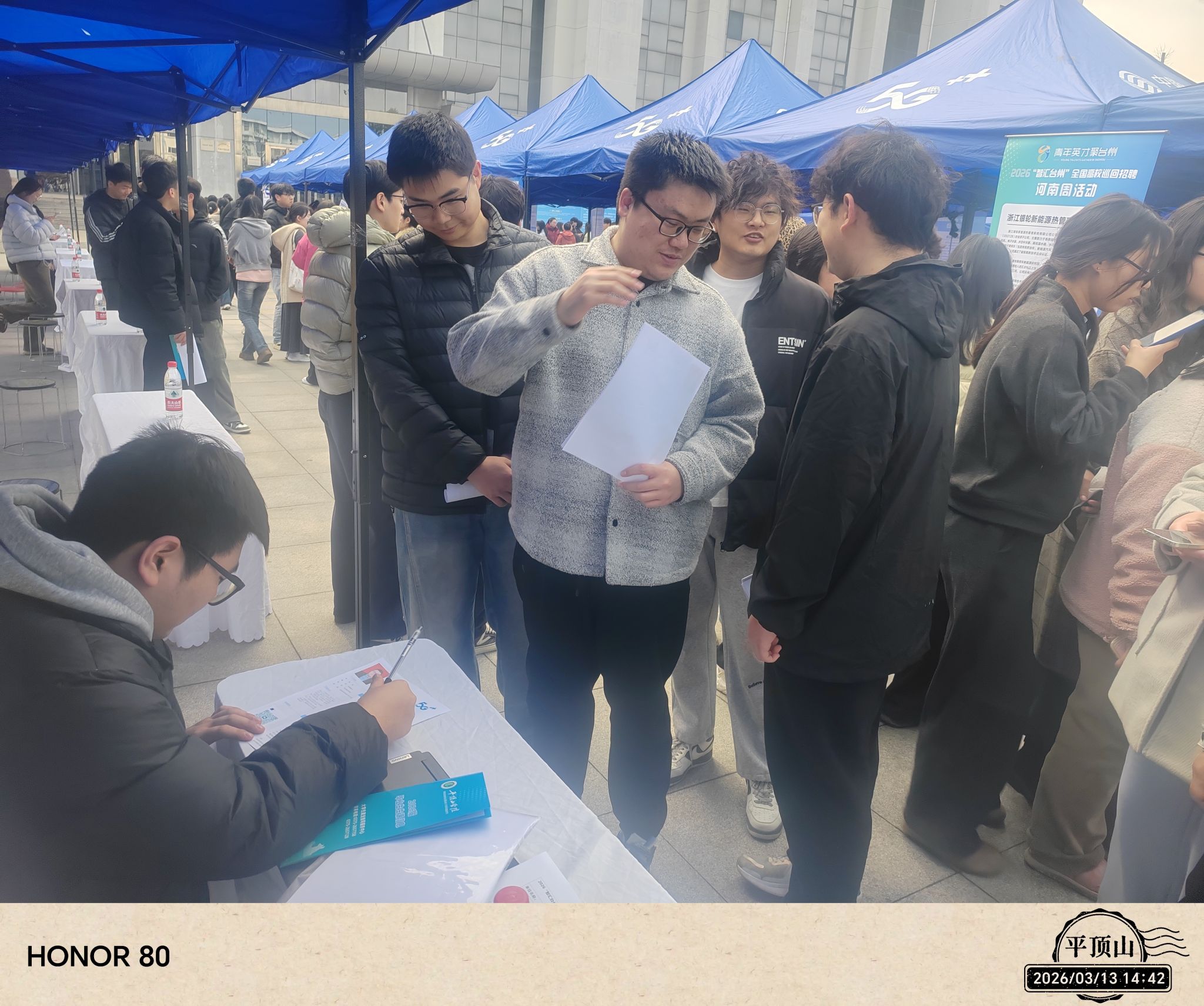 为搭建豫浙人才交流合作平台,助力毕业生高质量充分就业,3月13日下午,2026“智汇台州”全国高校巡回招聘河南周活动—平顶山学院专场在我校图书馆北广场圆满举办。本次招聘活动汇聚台州多家优质企业,为毕业生带来海量就业机遇。