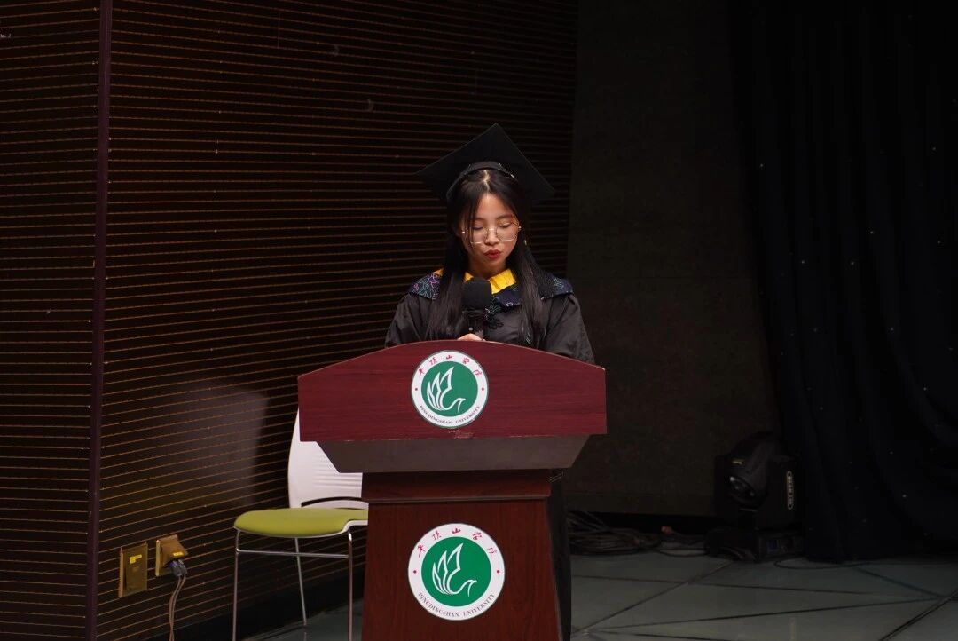 教师代表周志青发言,他充分肯定了毕业生从四年前的懵懂迷茫的少年成长为今天目光坚毅、目标远大的青年一路走来付出的努力,向圆满完成学业的优秀学子表示衷心祝贺,希望毕业生们传承平顶山学院精神、勇担时代使命,志存高远,以奋斗精神铸就青春底色,在新的征程上谱写壮丽的人生篇章。