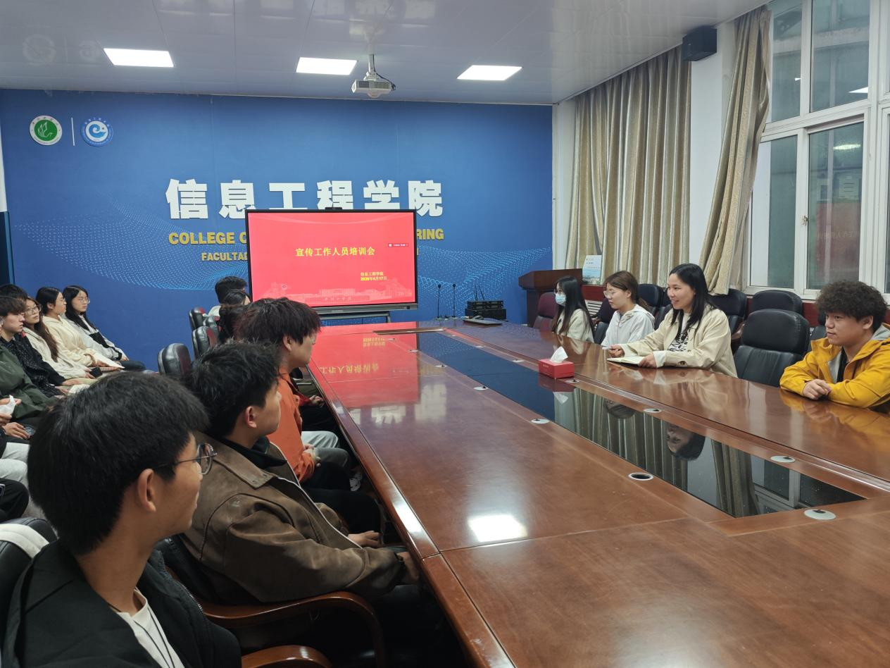 为进一步加强学院宣传队伍建设,牢牢把握意识形态工作主动权,切实提升宣传工作人员的政治素养与业务能力,4月17日,信息工程学院举办了宣传工作人员专题培训会。学院宣传工作负责人刘柯及学生宣传骨干代表参加培训。