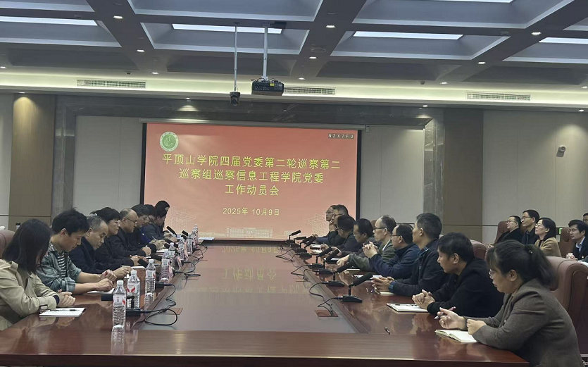 根据学校党委巡察工作安排,10月9日下午,四届党委第二巡察组巡察信息工程学院党委工作动员会在尧山实验室二楼会议室举行。会前,党委第二巡察组组长梁广成主持召开与信息工程学院党委书记胡艳艳和院长樊爱宛的见面沟通会,通报了本轮巡察工作的任务和要求。会上,党委第二巡察组组长梁广成作了动员讲话,信息工程学院党委书记胡艳艳主持会议并作表态讲话。校巡察工作办公室主任白青、校纪委副书记王耀先、校党委组织部副部长陈留彪、巡察组全体成员、信息工程学院全体教职工和学生代表70余人参加了动员会。